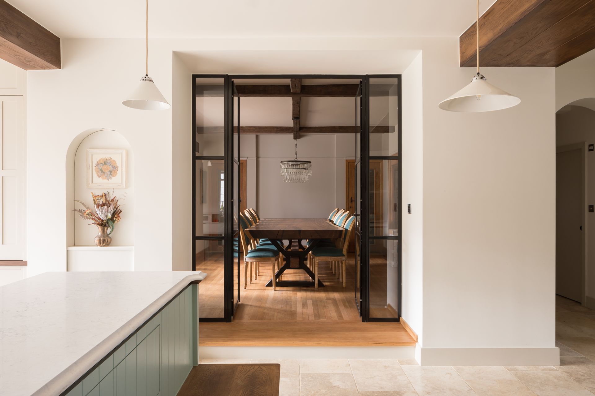 This project involved a complete transformation of a two-storey home in Ashtead, including a double and rear extension, as well as a full interior refurbishment. The rear extension created a spacious, open-plan kitchen and dining area that flows seamlessly into the garden, ideal for family living. We also renovated the front carport's external walls, enhancing the property’s curb appeal while preserving its character.